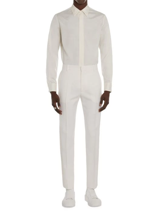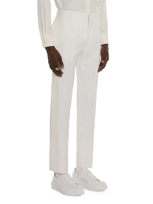 Made of cotton, these slim-fit jeans feature side slip pockets and back buttoned welt pockets.