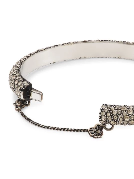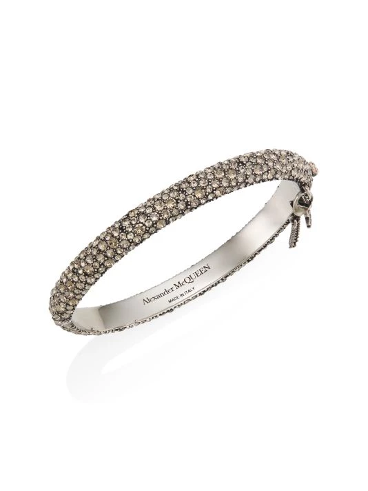 Crystal pavé adds sparkle to this antiqued silvertone bangle bracelet, with custom pushlock closure.