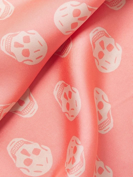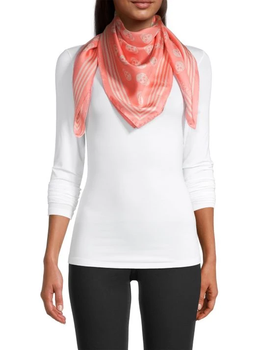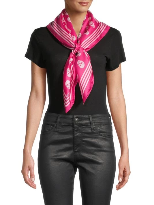 McQueen’s iconic skull motif adorns this luxe silk scarf.