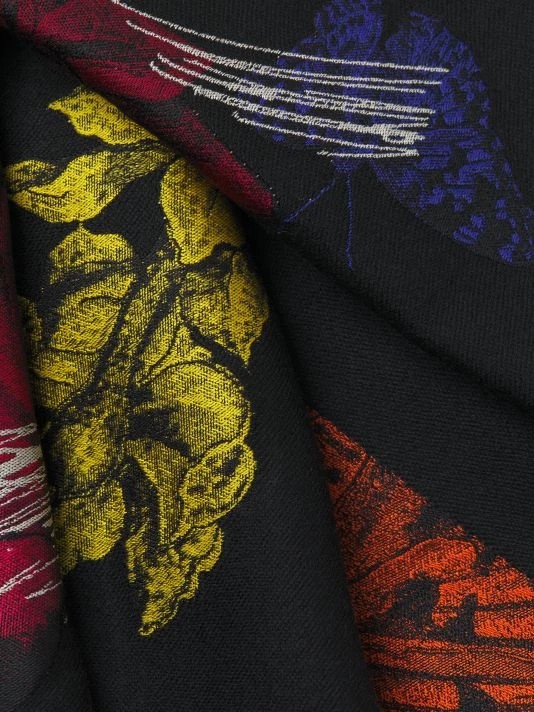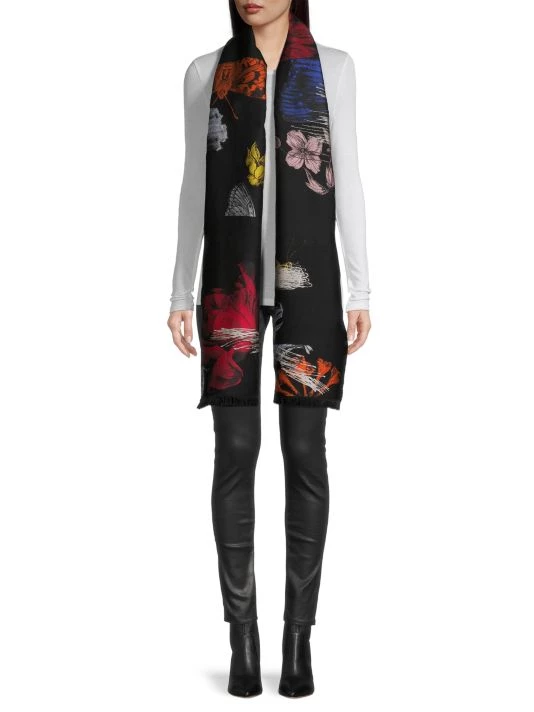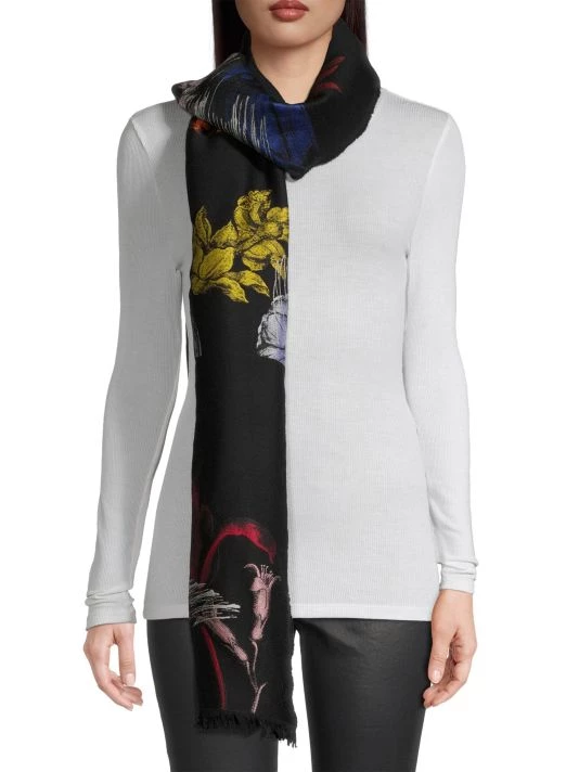 Alexander McQueen’s Botanical Reel scarf is crafted of a luxe wool blend with fringed trim.