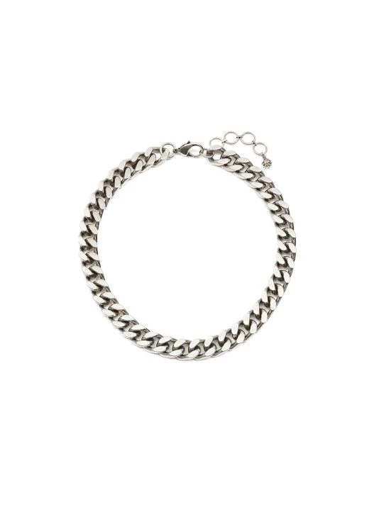 Crafted from silvertone metal, this choker necklace features a thick chainlink design.