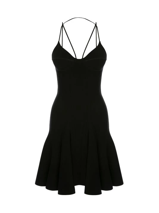 This sleeveless knit minidress is complete with a defined bodice and pleated skirt.