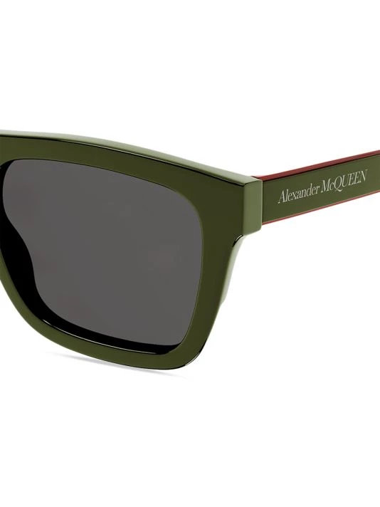 From the Casual Lines Collection. Selvedge family, highly recognizable and distinctive, is inspired by Jeans’ Cimosa also called Selvedge, that has given rise to signature accessories line launched by Mcqueen in fw20. These masculine rectangular sunglasses in full acetate feature the Alexander Mcqueen logo lasered and varnished on the temples.