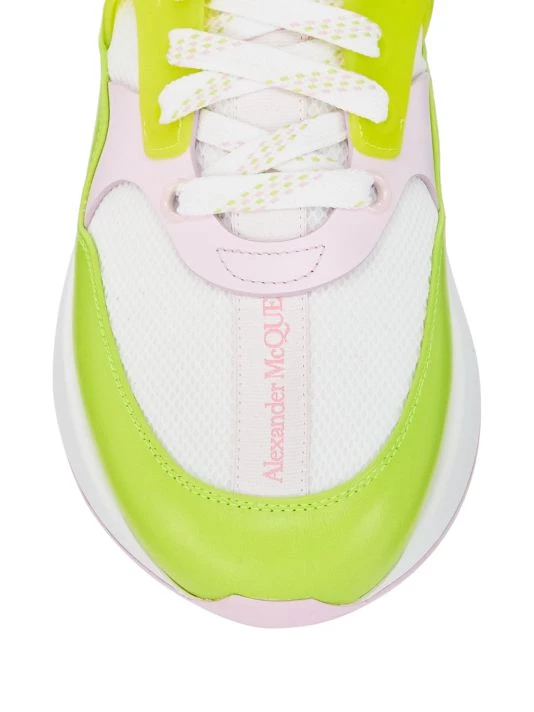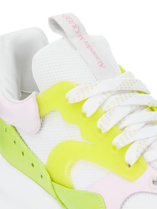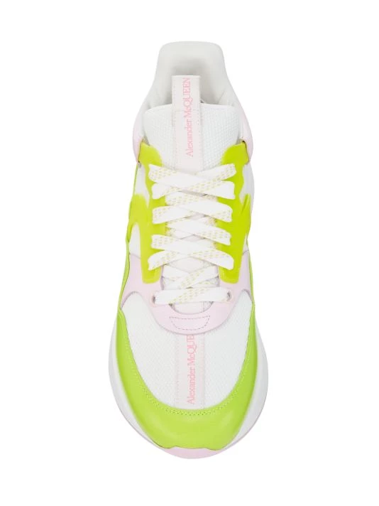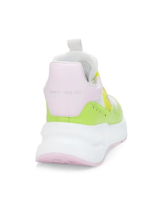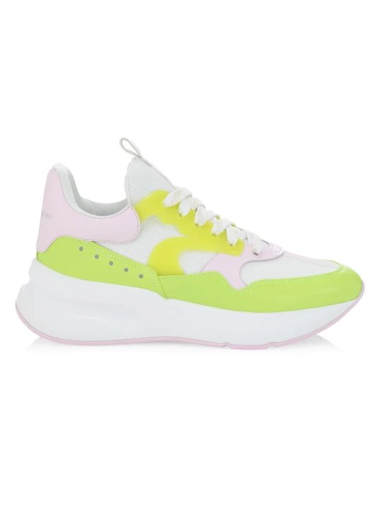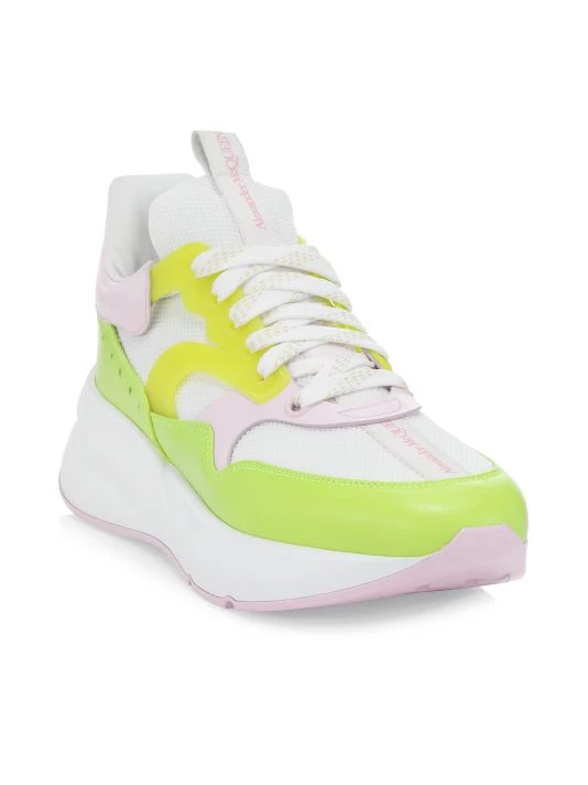 These Alexander McQueen running sneakers feature colorblocked leather panels with a trendy platform sole.