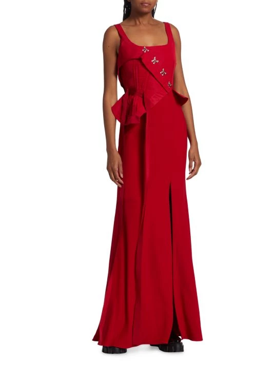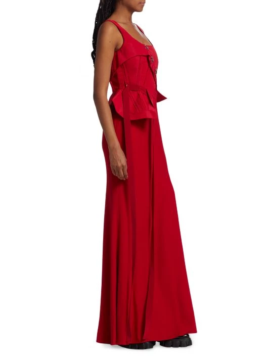 This sleeveless Alexander McQueen gown is finished with a corset-style bodice boasting silvertone hardware and boning.