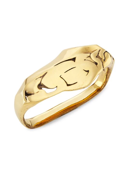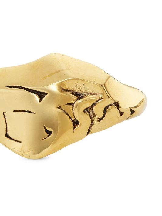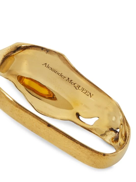 Showcasing a crushed-chain-inspired silhouette, Alexander McQueen’s double ring is crafted of polished goldtone metal. This striking piece is designed to be worn across two fingers for a bold, edgy effect.