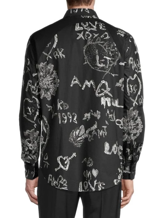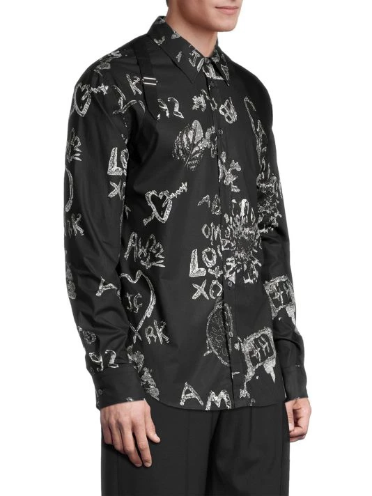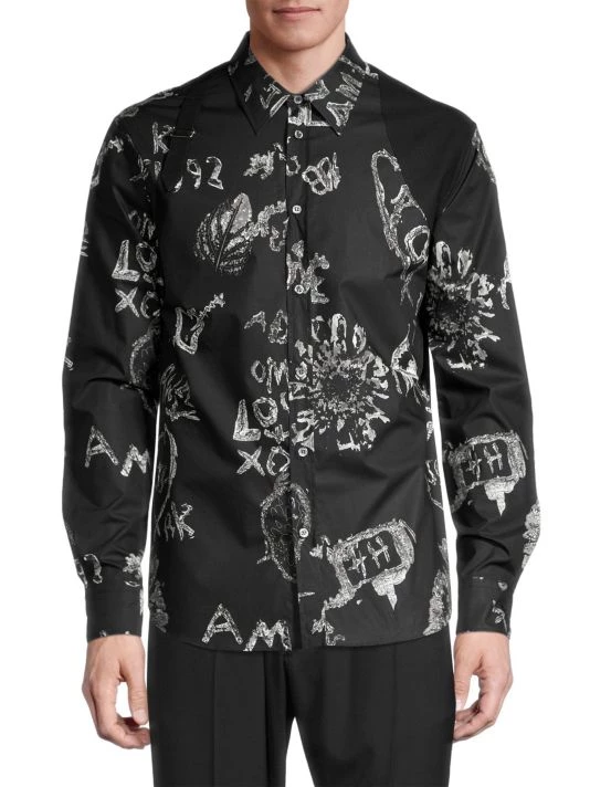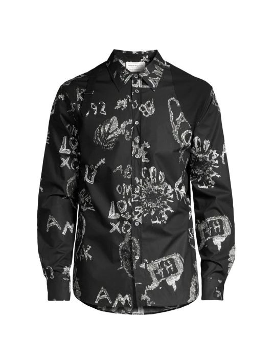 Crafted of cotton, this button-front shirt from Alexander McQueen features an all-over doodle print.