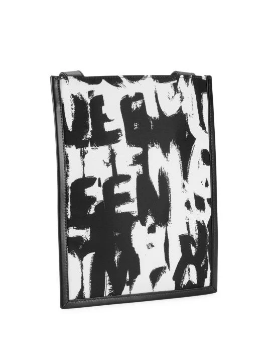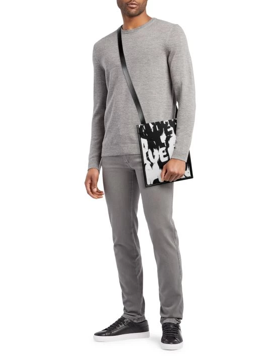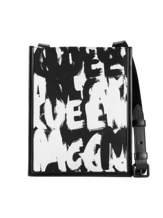 Featuring a streamlined silhouette, this single pocket flat bag features an adjustable strap and a street art-style spray paint logo print.
