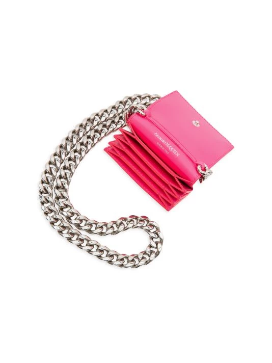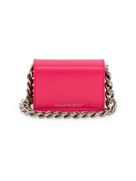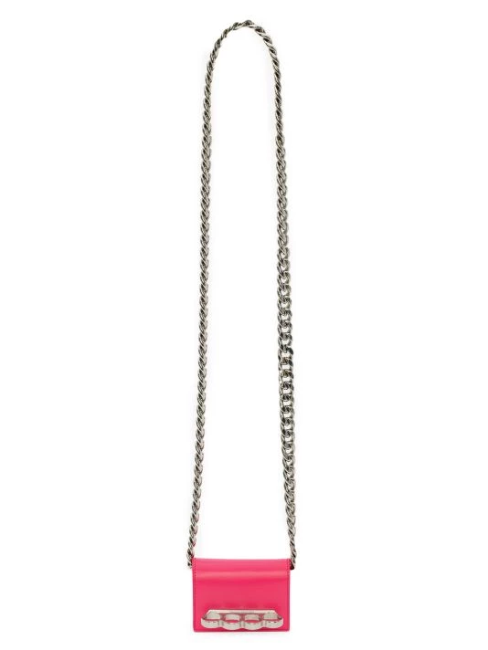 This micro leather bag is finished with signature knuckle rings and a chain-link shoulder strap.