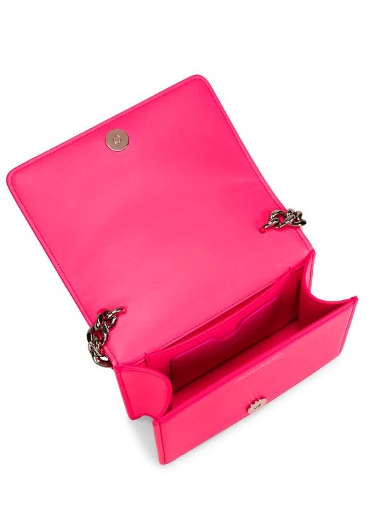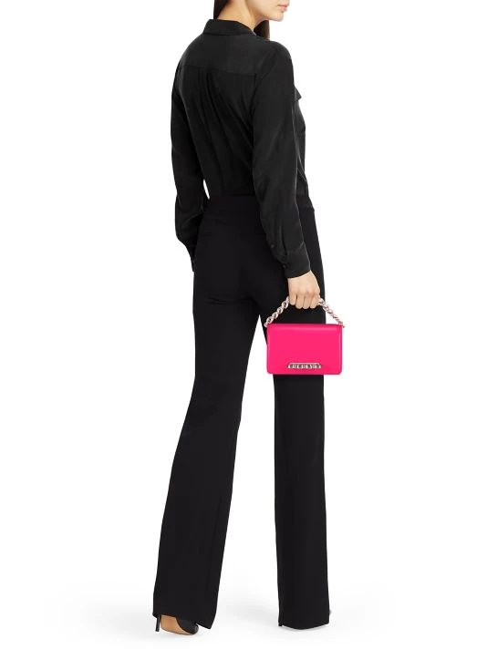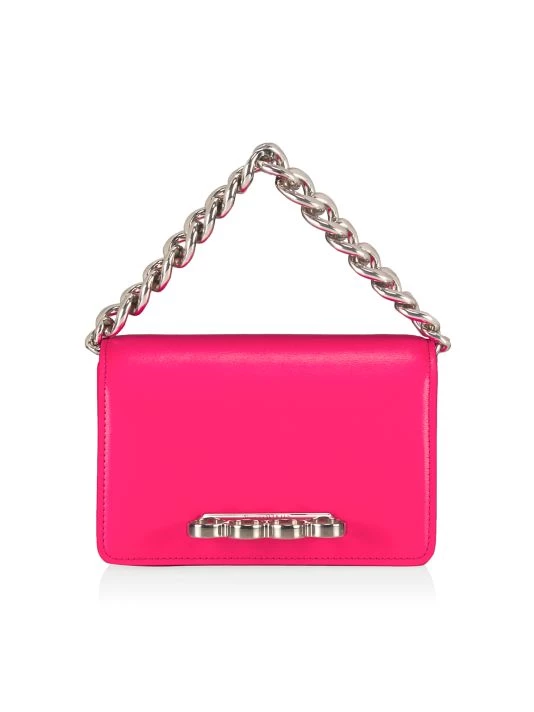 Made in Italy, this Alexander McQueen bag is crafted of supple leather. This piece has a silvertone chain-link handle, topped with an additional four-ring top handle.