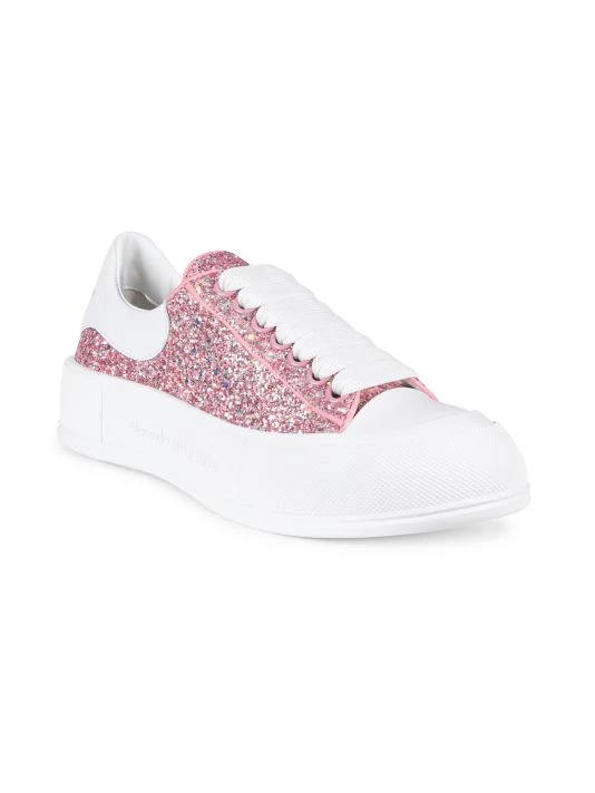 Allover glitter adorns these Plimsoll sneakers with a thick oversized rubber sole.