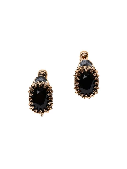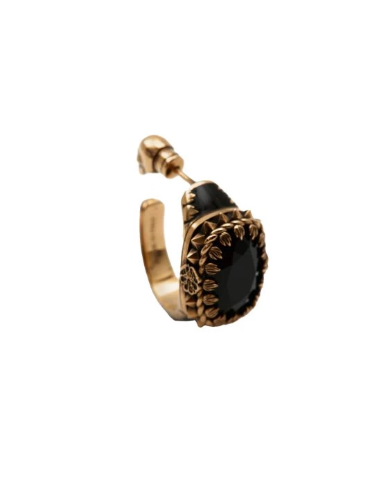 Secured with punk-inspired claws and spikes hardware, this wraparound hoop earring features a center enamel stone.