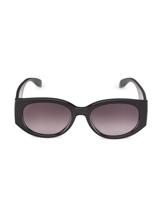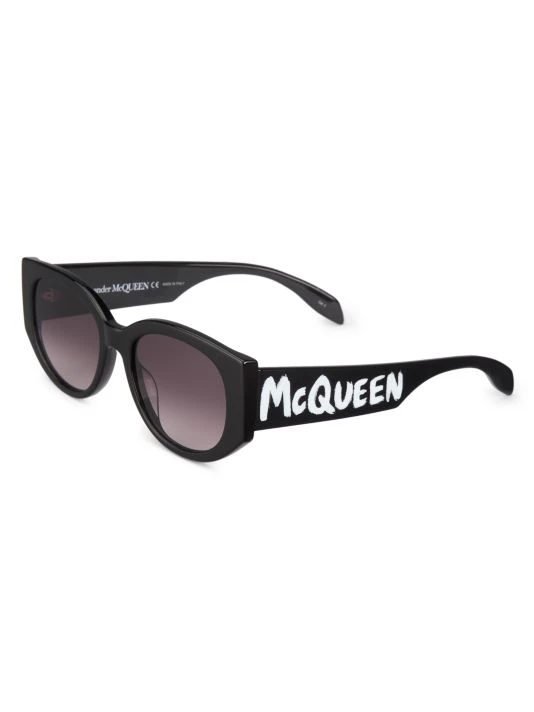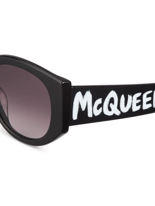 Bold oval frames define these polished sunglasses, decorated with signature graffiti logo at temples.