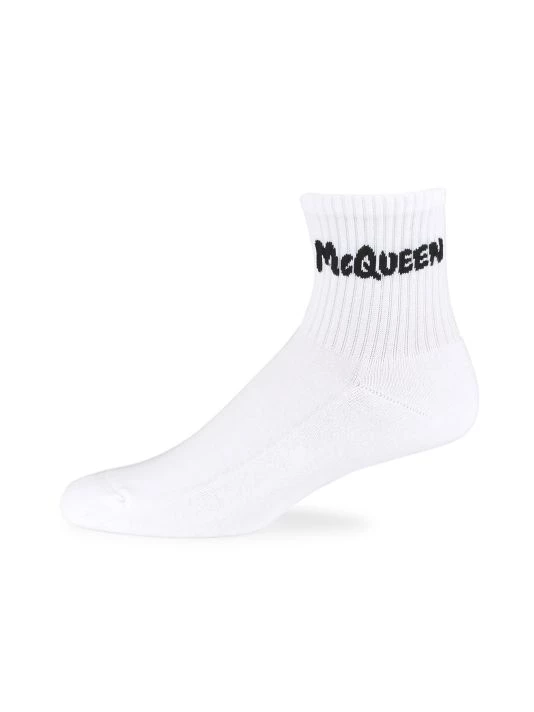 Alexander McQueen’s crew socks are designed with a graffiti logo accent.