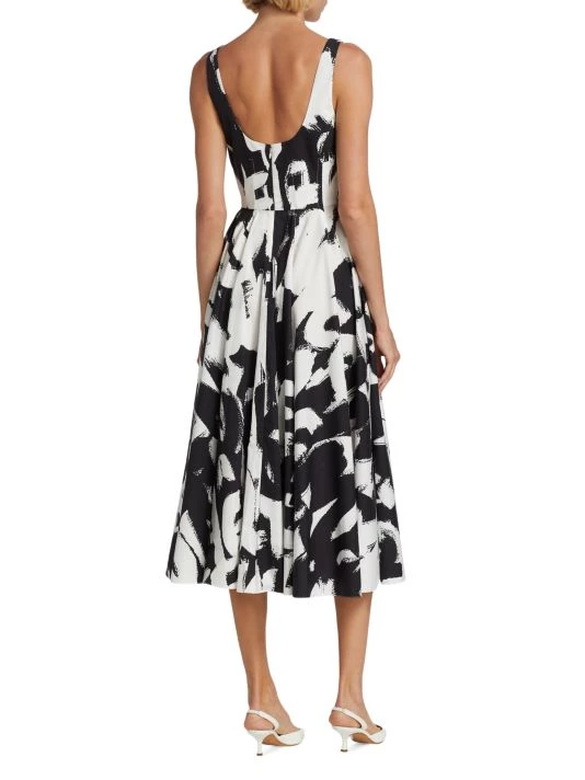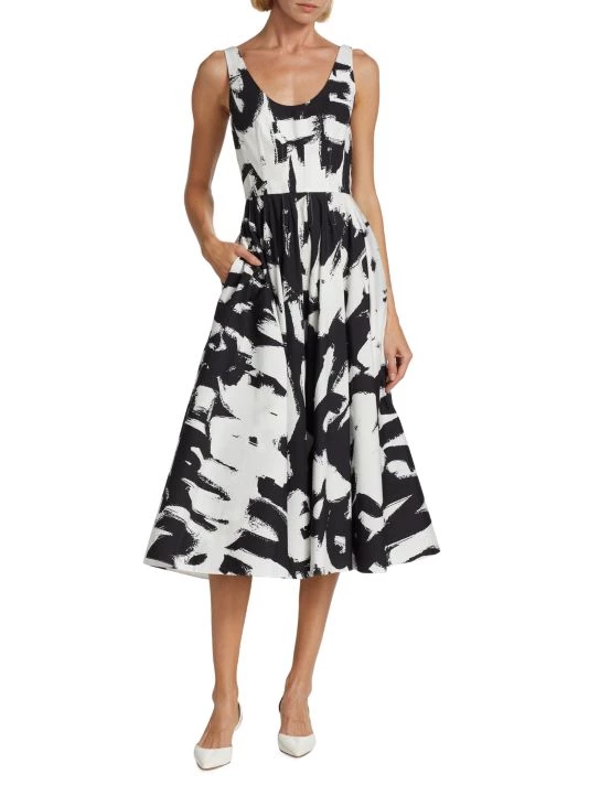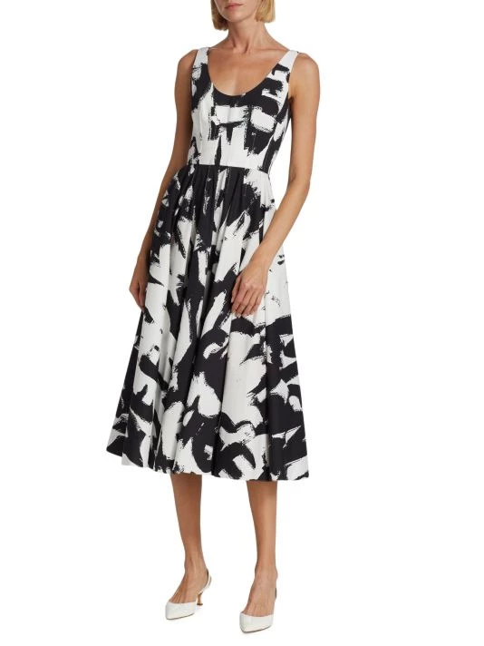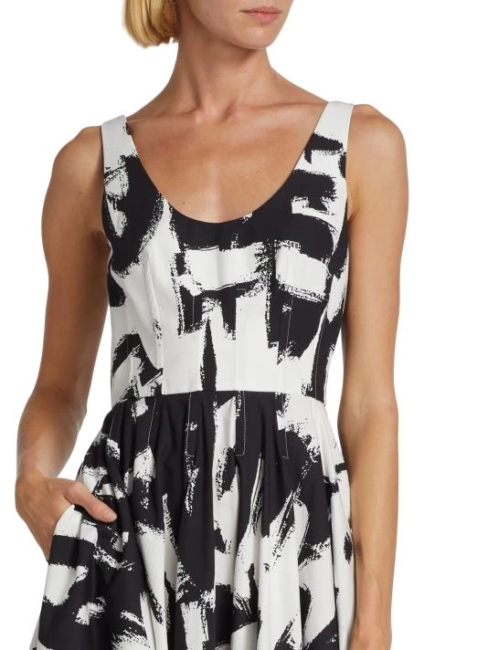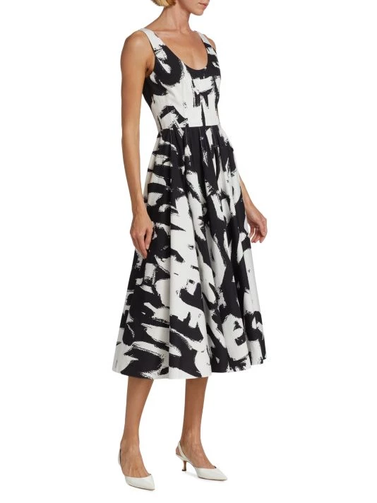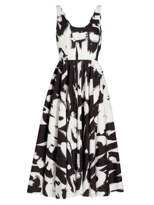 Boasting the label’s signature Graffiti print, Alexander McQueen’s sleeveless cotton dress features an A-line silhouette with a scoopneck and a pleated midi-skirt.
