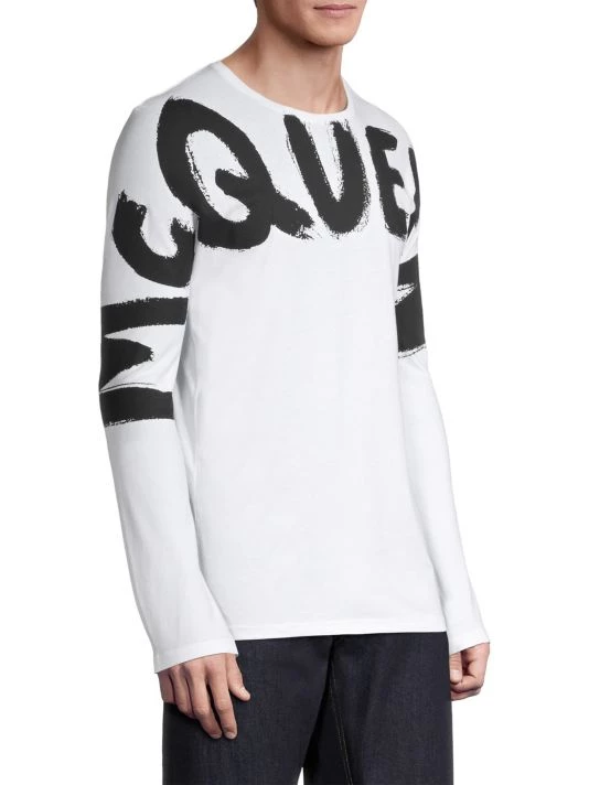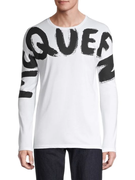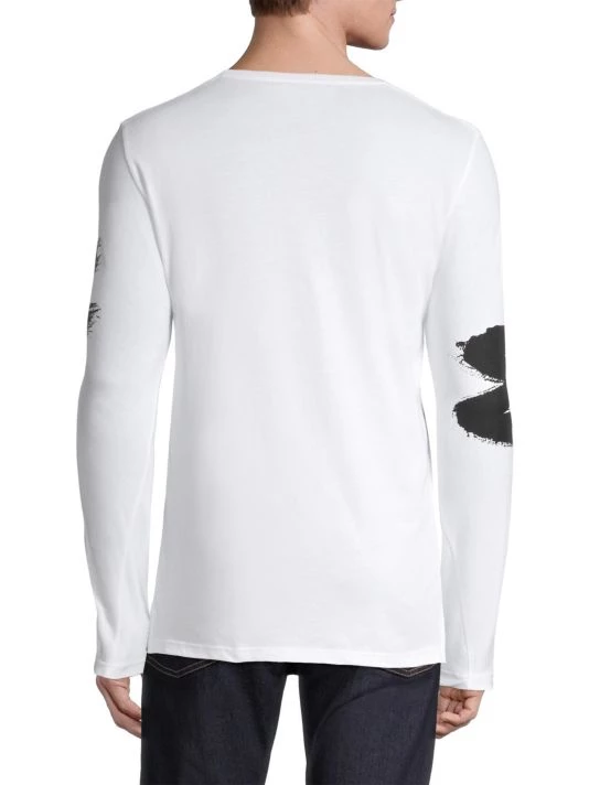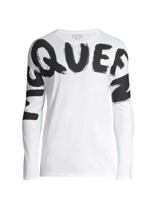 A graffiti print logo at the yoke lends streetwear flair to this long-sleeve cotton t-shirt.