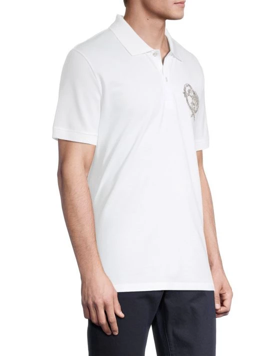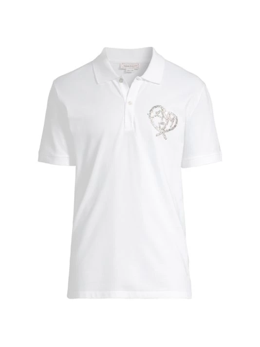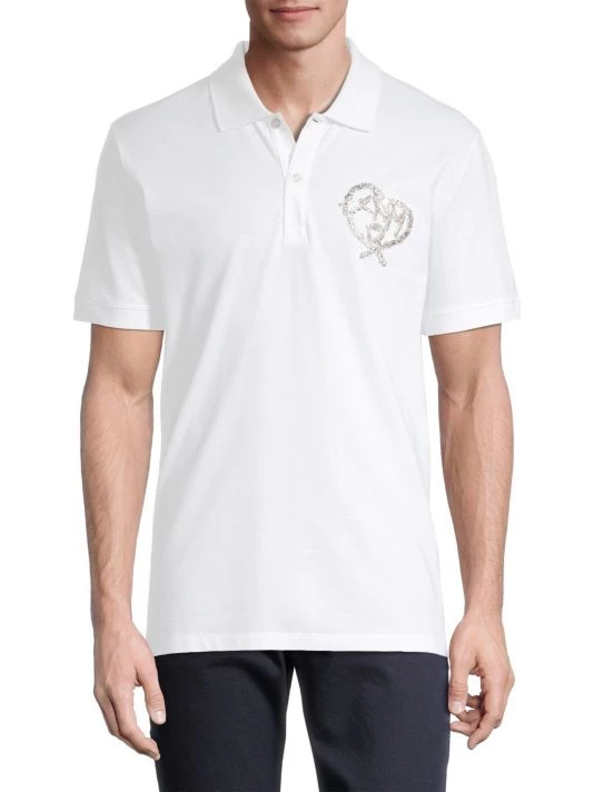 Crafted of cotton, this classic polo shirt is embellished with a silvertone heart logo on the chest.