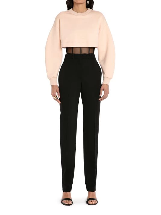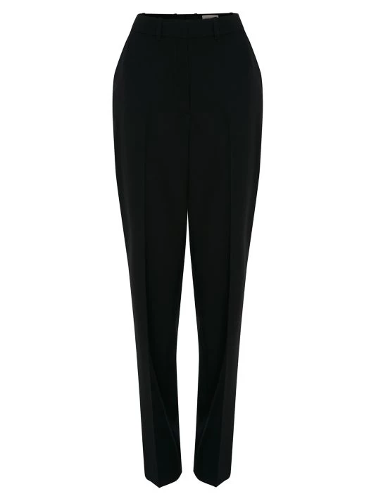 Crafted from luxe wool, Alexander McQueen’s high-waisted trousers boast a straight-leg silhouette and dimensional pleating at the front.