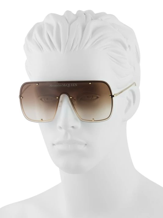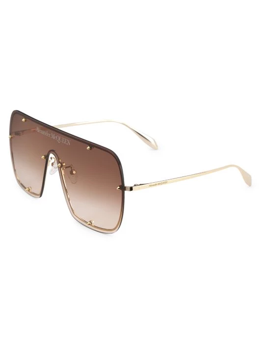From the Icons Collection. A futuristic mono metal frame defines these directional shield sunglasses, designed with an embossed logo across the top.