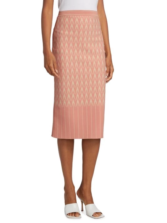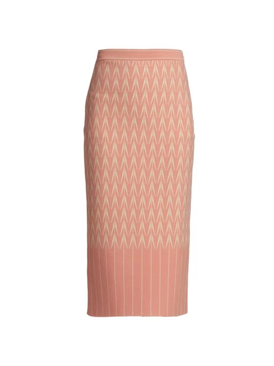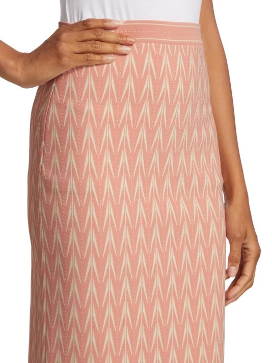 Decorated with a jacquard pattern, Alexander McQueen’s midi-skirt features an elasticized waist and a vented back.