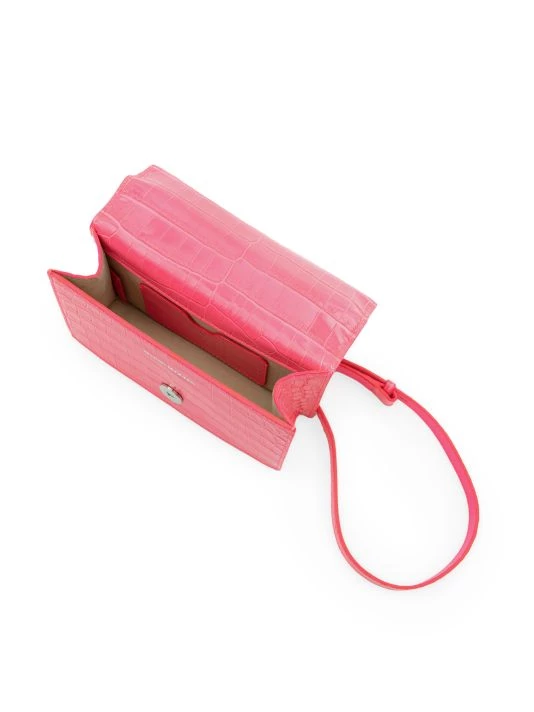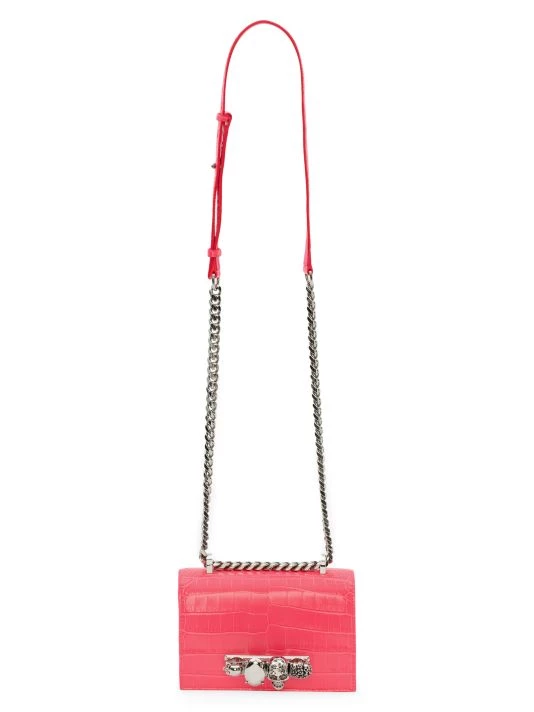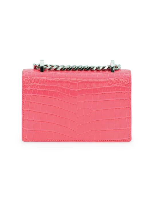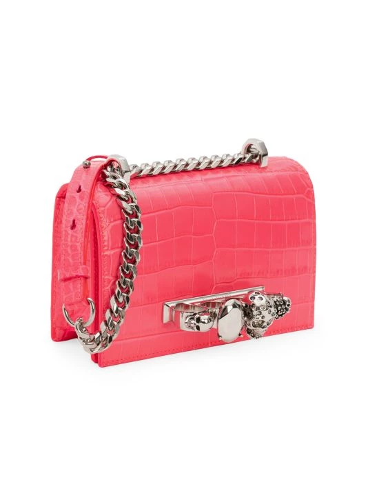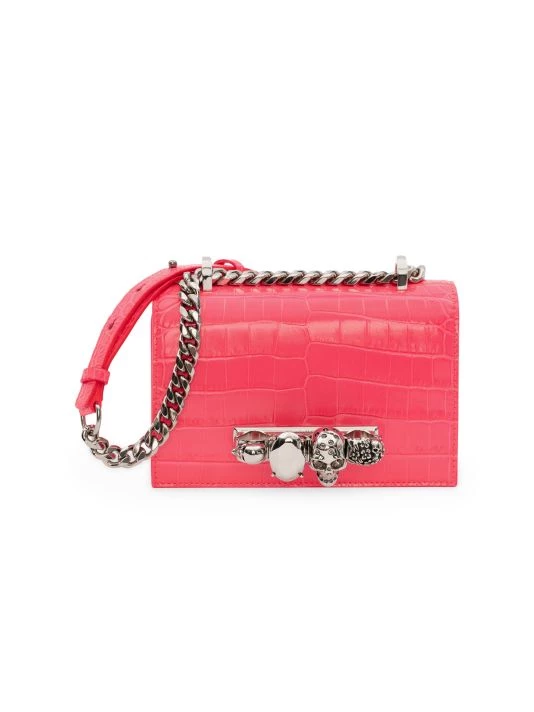 Adorned with signature four-finger skull hardware, this petite crossbody bag is crafted from glossy croc-embossed calfskin.