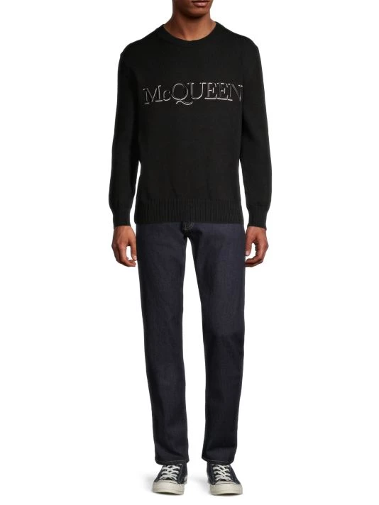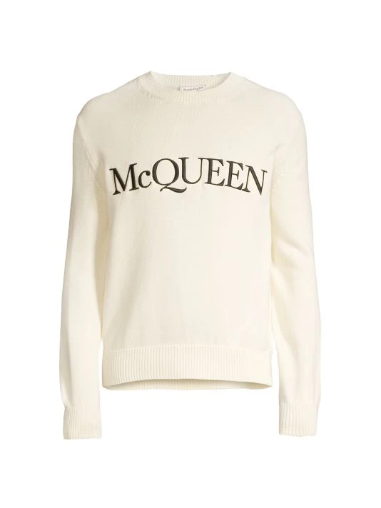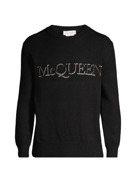 Knit in a soft cotton, this crewneck sweater is adorned with an embroidered two-tone logo across the chest.
