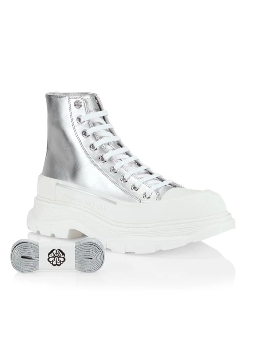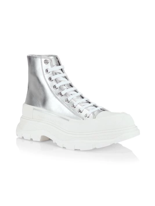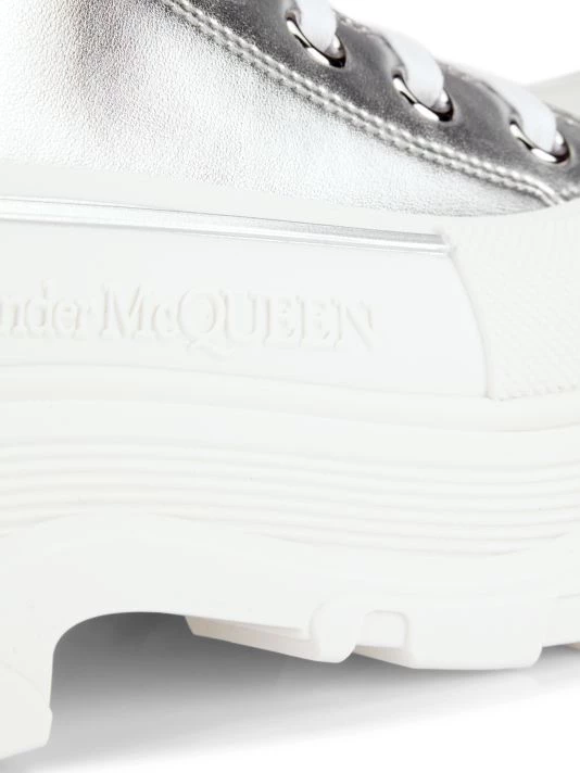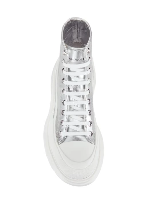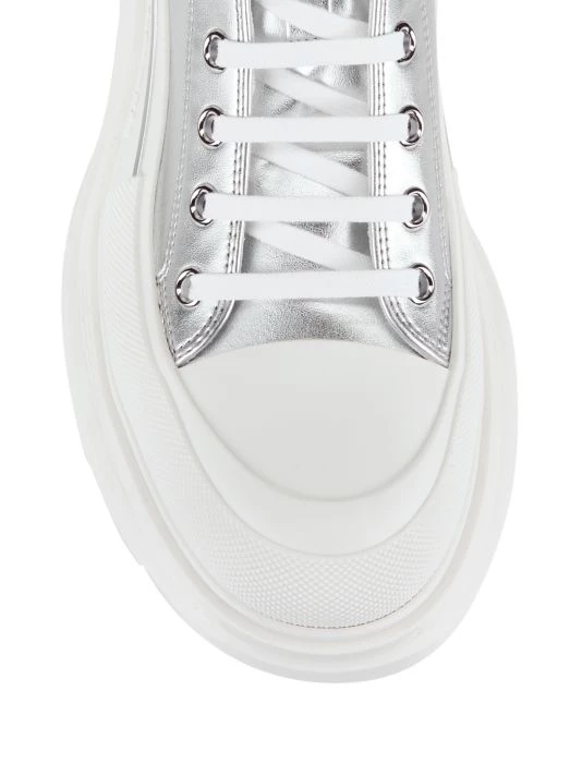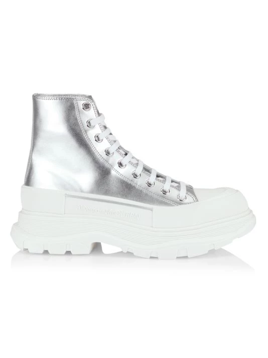 Inspired by London skies, this Alexander McQueen collection features cloud prints on linen, wool, and silk designs. Each piece encompasses casual and formal wear, from structured blazers to crewneck sweatshirts and spiked leather loafers, staying true to the brand’s slim-fit silhouettes.Inspired by London skies, this Alexander McQueen collection features cloud prints on linen, wool, and silk designs. Each piece encompasses casual and formal wear, from structured blazers to crewneck sweatshirts and spiked leather loafers, staying true to the brand’s slim-fit silhouettes. These Alexander McQueen sneakers feature a classic lace-up vamp paired with a dramatic rubber sole.