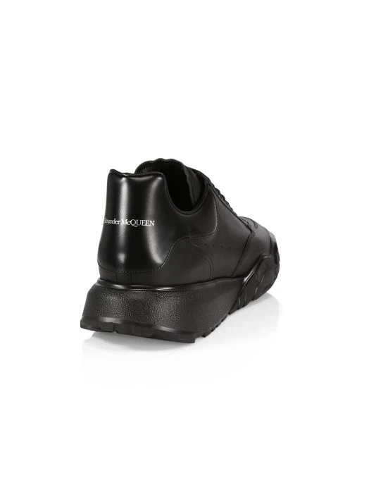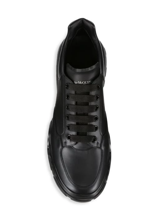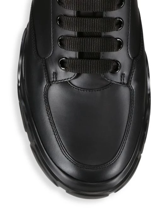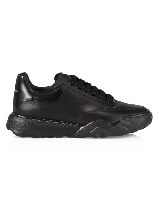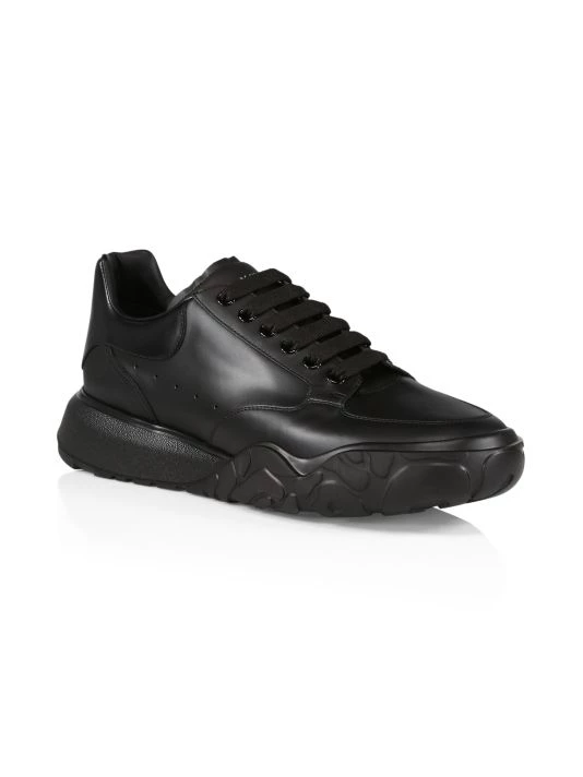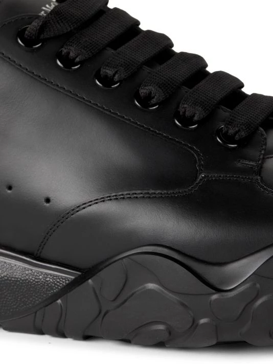 Sleek all-black sneakers in a supple leather with a chunky sole.