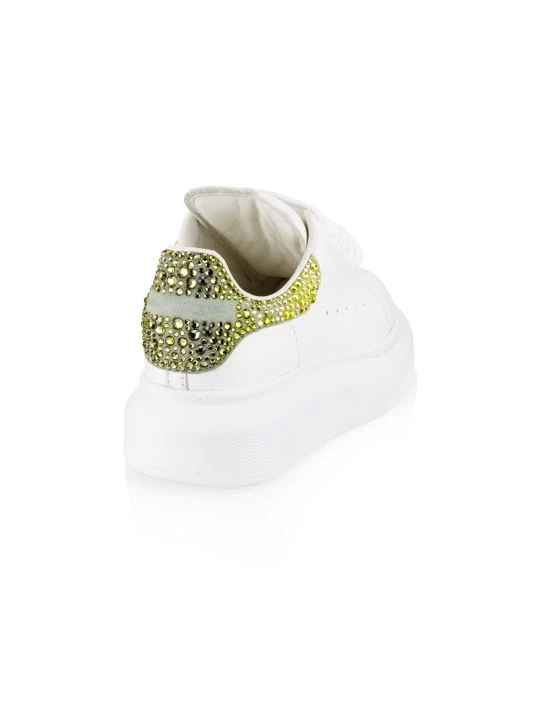 In luxe Italian leather, these classic Alexander McQueen oversize sneakers feature ombré-effect crystal embellishments at the back tab.