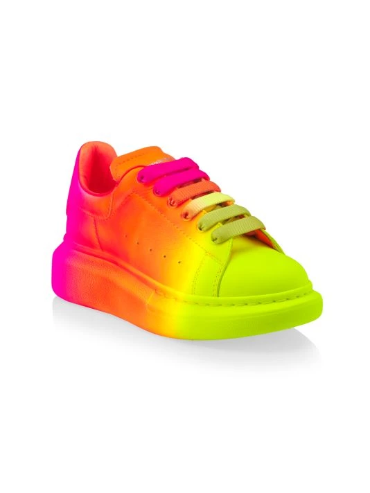 Elevated on anoversize platform, these leather sneakers feature a vibrant ombré-effect design.