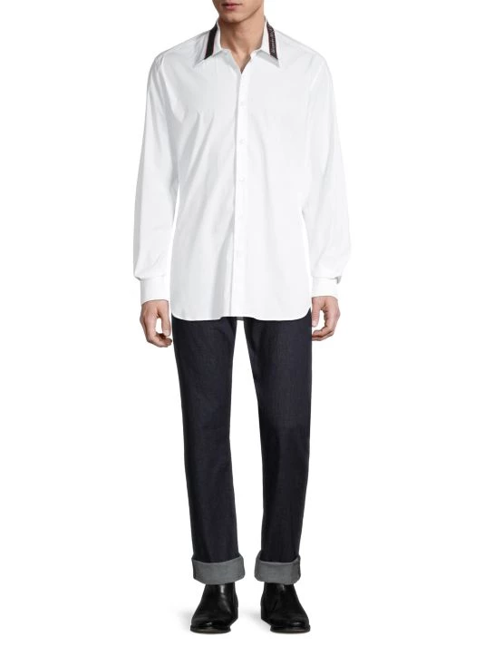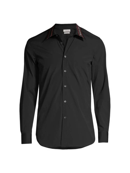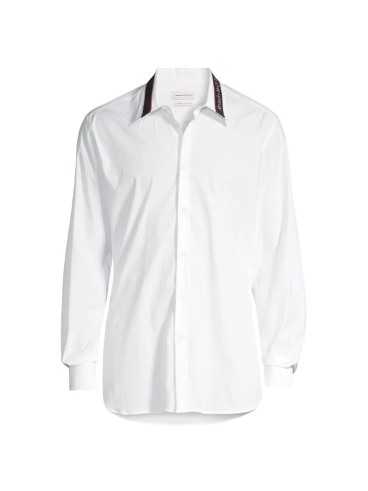Made of a cotton blend, this button-down shirt features a spread collar with logo tape.