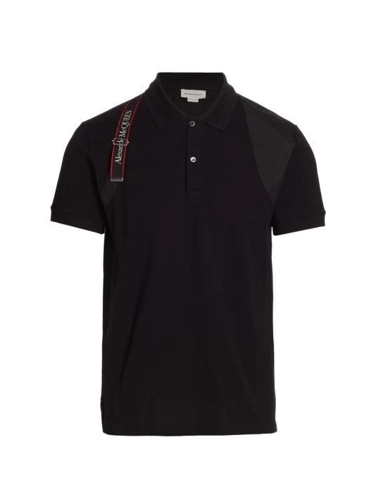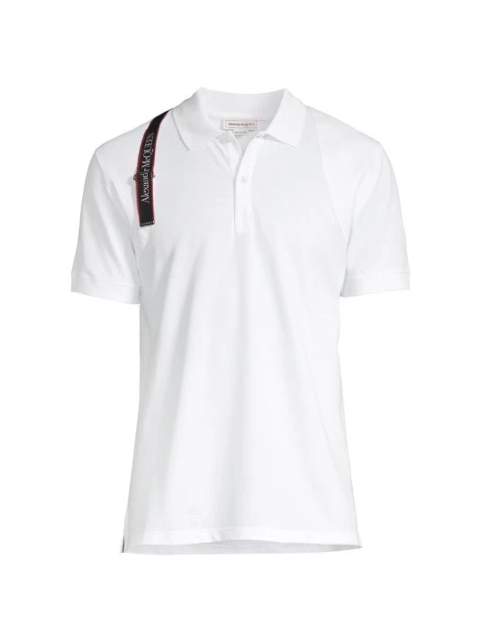 McQueen’s take on a classic polo shirt, this rich cotton version features an adjustable harness at one shoulder.