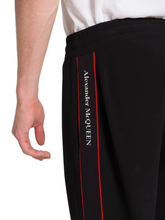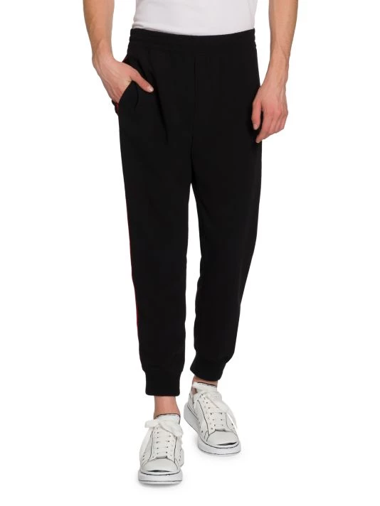 Wardrobe essential joggers in a rich viscose-blend feature iconic logo and taping down the leg.