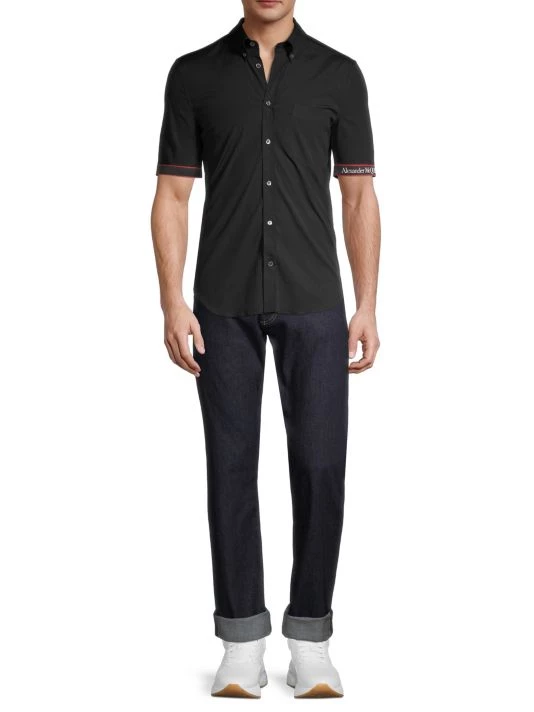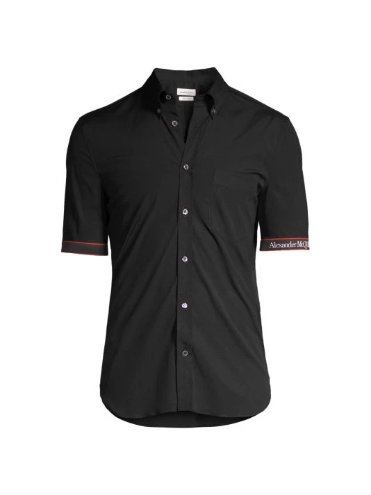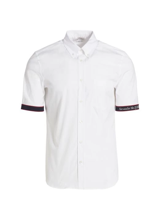 Made of a cotton blend, this button-down features logo tape on its short sleeves.