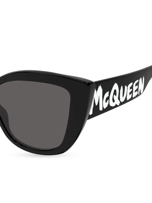 Alexander McQueen’s bold sunglasses flaunt distinctive cat-eye frames. Made in Italy, this pair is decorated with the signature graffiti logo at the temples.
