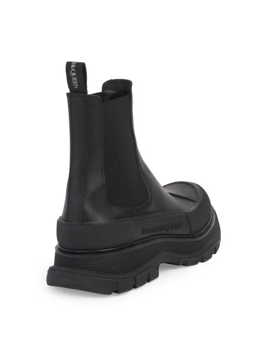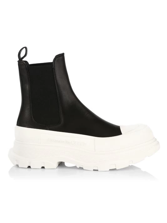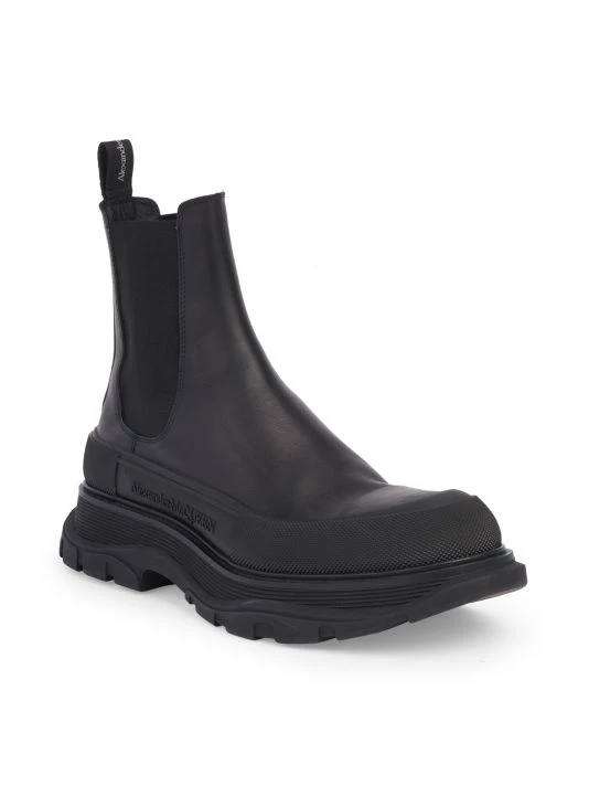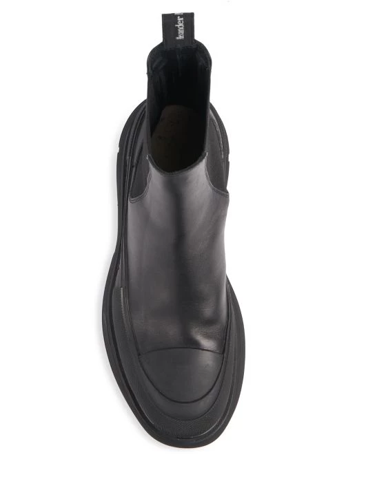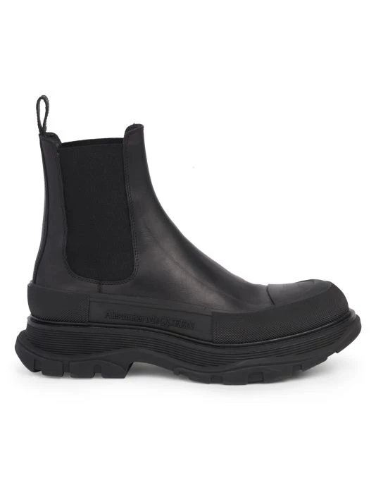 Combat-style boots topped with elasticized gores finished in sleek tonal leather.