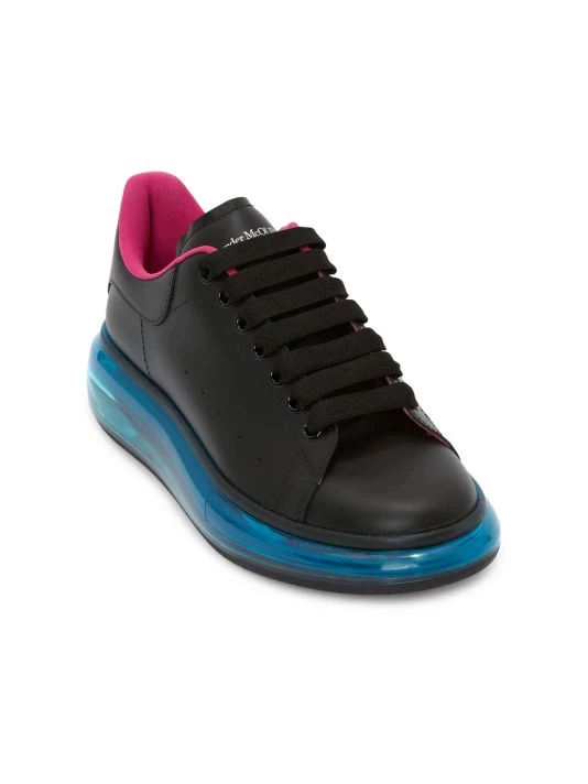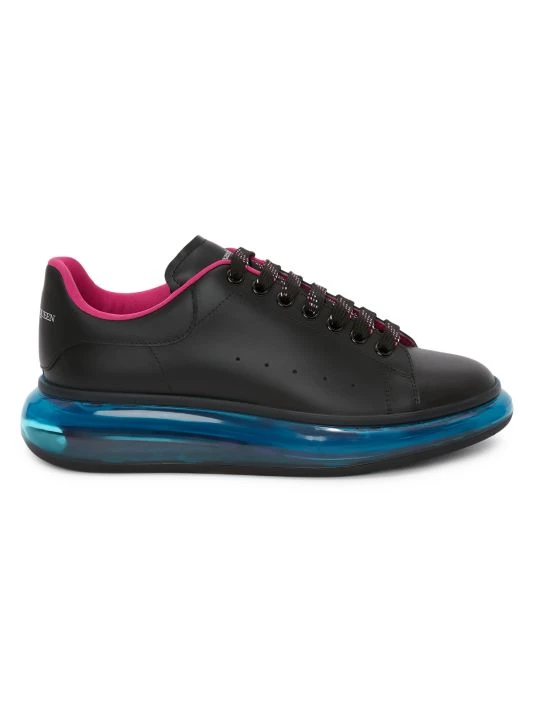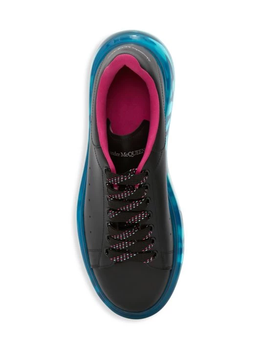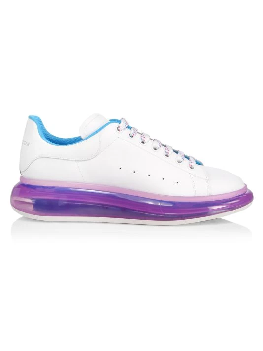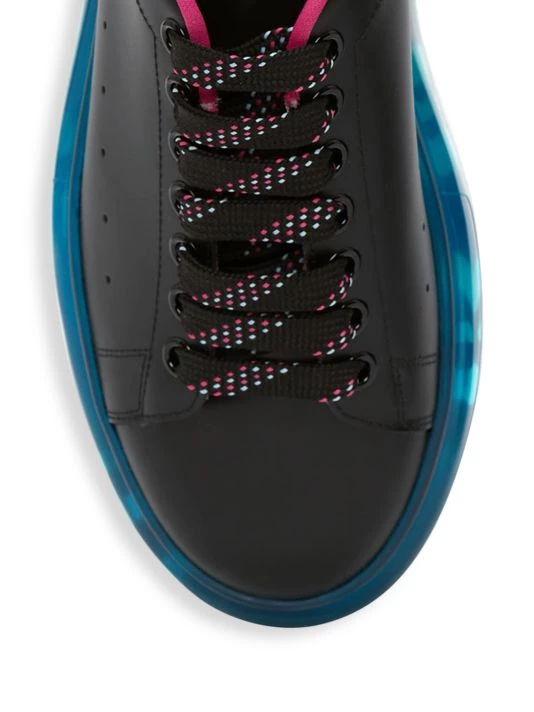 Multicolor laces contrast the rich leather construction of these sneakers featuring a transparent sole.