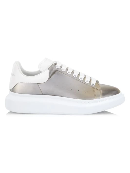 These signature Alexander McQueen low-top sneakers feature metallic leather uppers lending a modern feel to the piece.