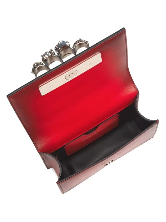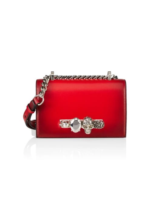 Alexander McQueen’s satchel is styled with a four-ring duster showcasing the signature crystal-embellished skull. Made in Italy, this hands-free silhouette is crafted of gradient leather.