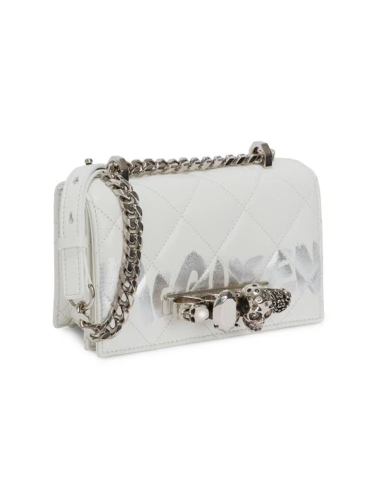 Supple leather bag in a quilted finish with signature jeweled embellishment.