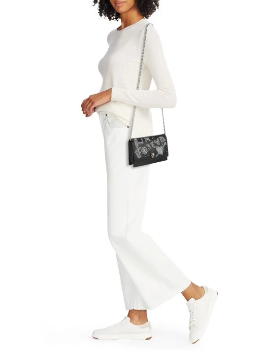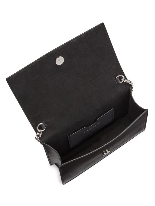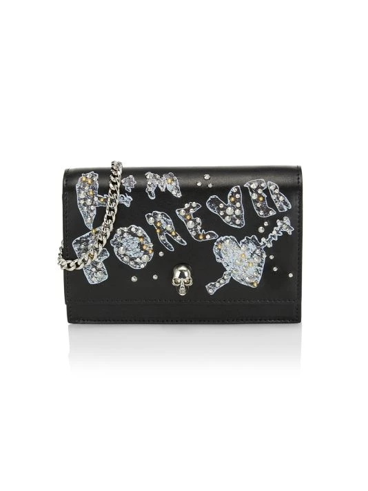 Made in Italy, Alexander McQueen’s bag is crafted of smooth calfskin leather adorned with iconic skull hardware and studded embellishments. This piece is accompanied by a sleek chain strap for hands-free ease.