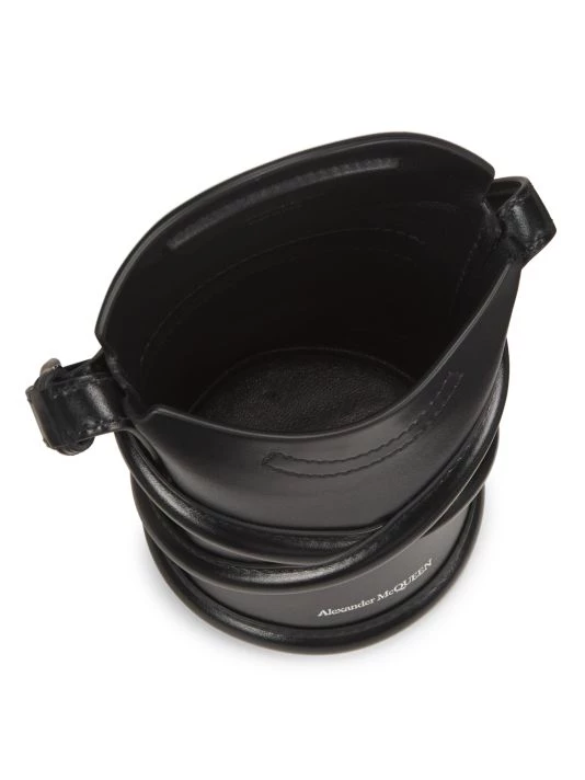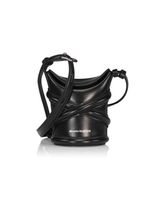Made in Italy, Alexander McQueen’s Curve bucket bag flaunts a structured silhouette with matching crisscrossed straps. This piece is detailed with the embossed seal motif and foiled logo.