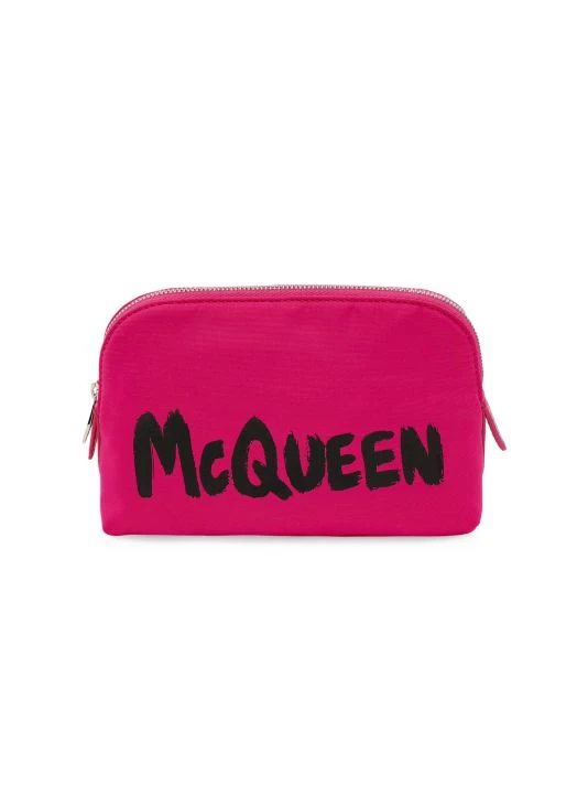 A graffiti-style logo fronts this bright nylon toiletry bag.