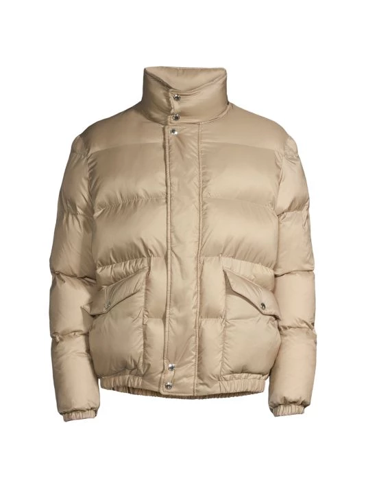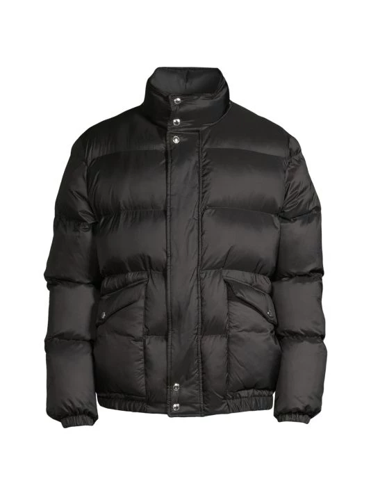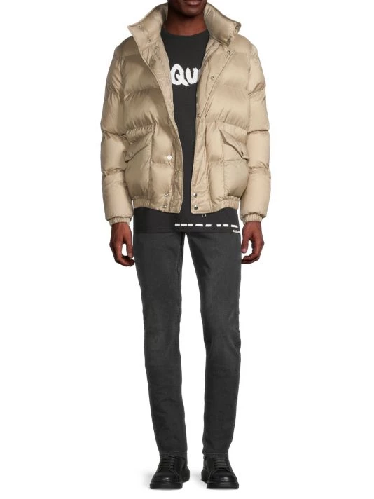 This Alexander McQueen Puffer Coat is crafted of nylon and features both snap- and zip-front closures.