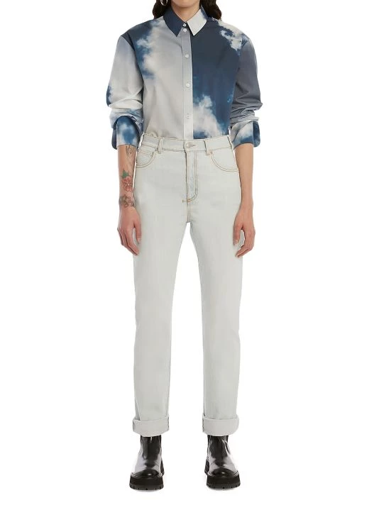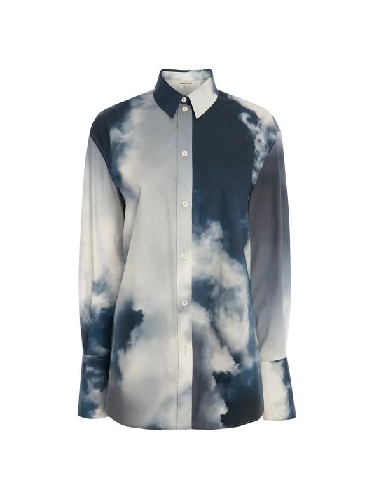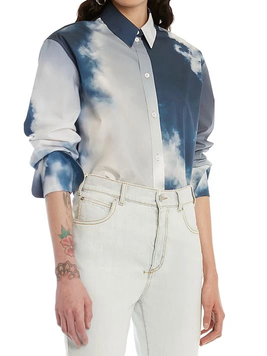 Cut in a menswear-inspired silhouette, this oversized shirt is defined by a large two-tone sky print.