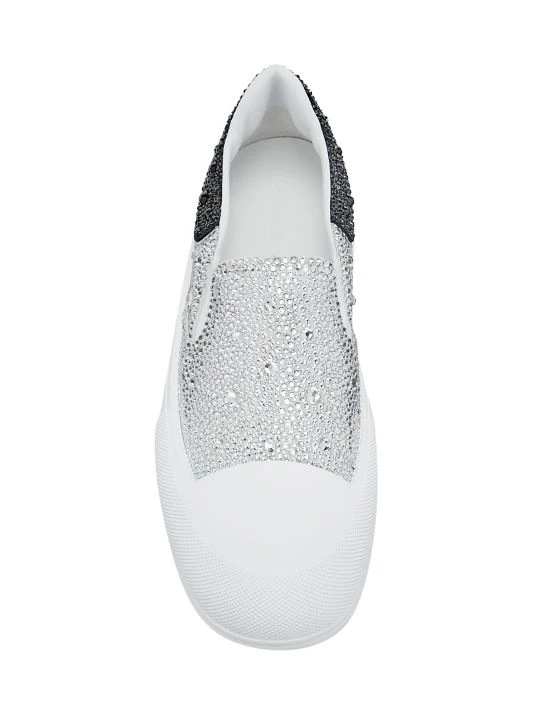 Straying from rebellious roots and offering a more romantic line, this collection was inspired by the works of English poet and painter William Blake. Crystal embellishments cascade across these slip-on sneakers with an elevated sole.