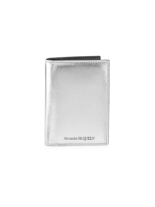 Crafted of smooth leather, this pocket organizer in a metallic finish features the McQueen logo across the front.