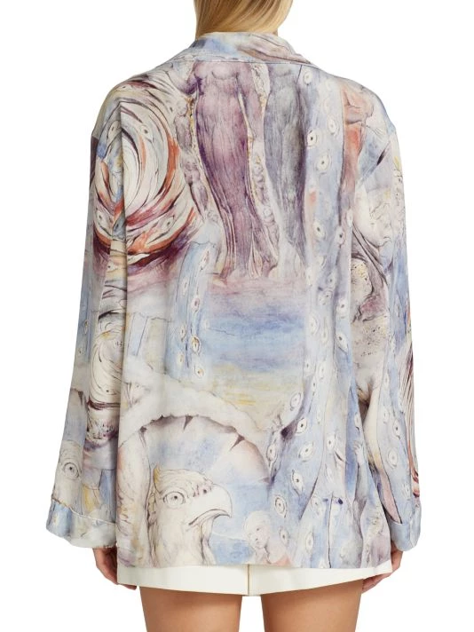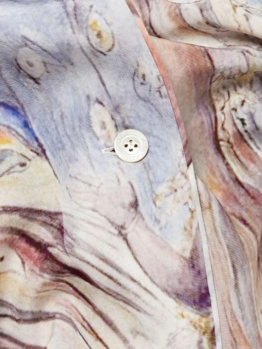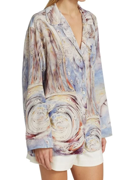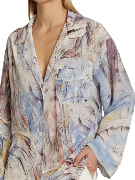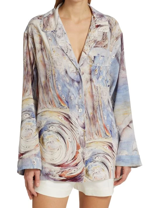 This classic silk pajama shirt is elevated with a fantastical swirl print.