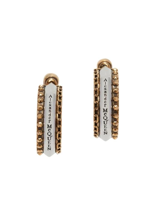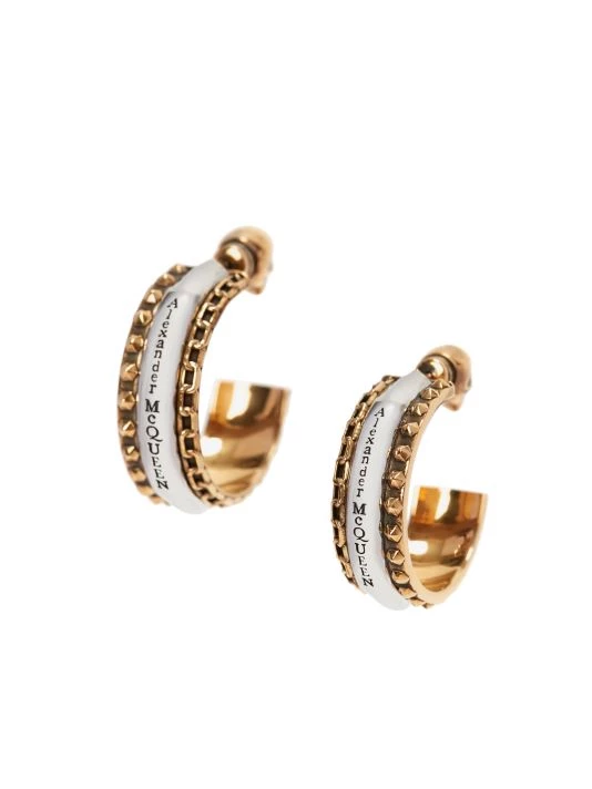Punk-inspired studs adorn these logo mini hoop earrings, finished with a skull-shaped clasp.
