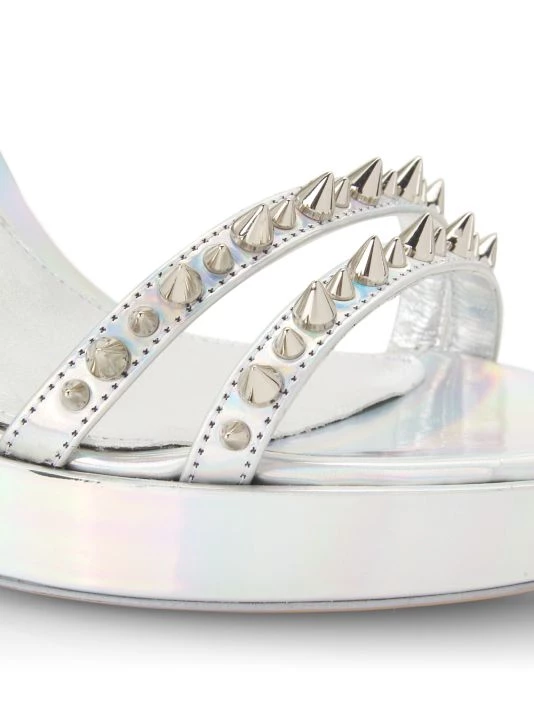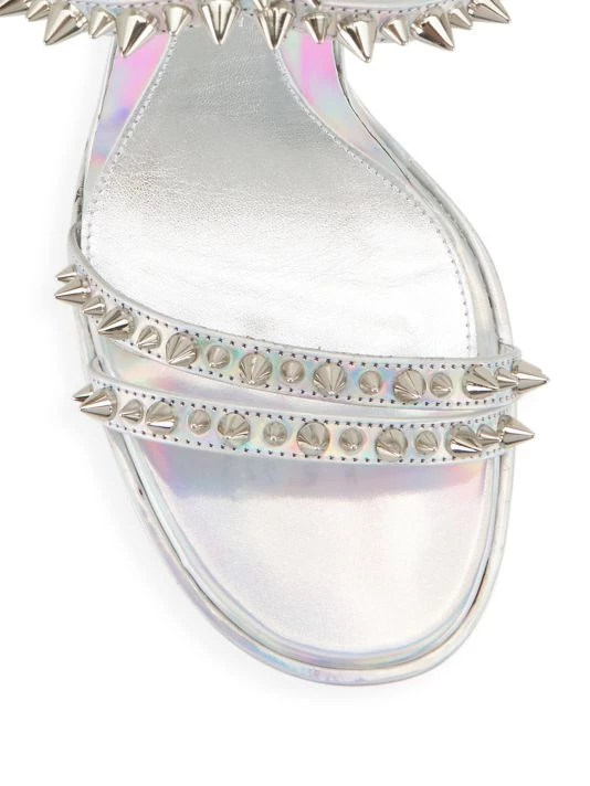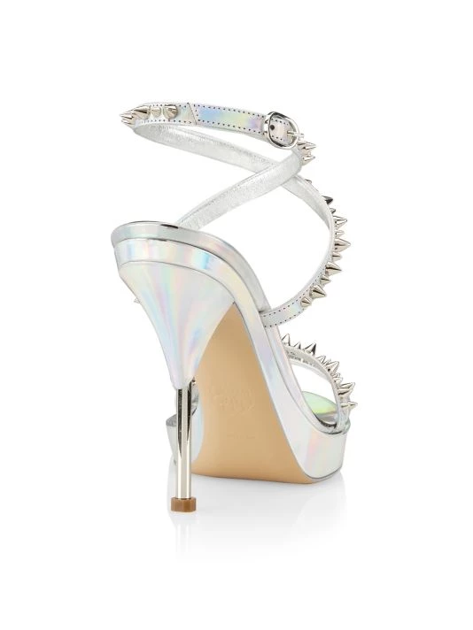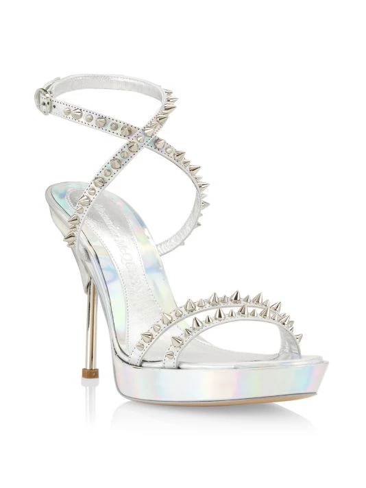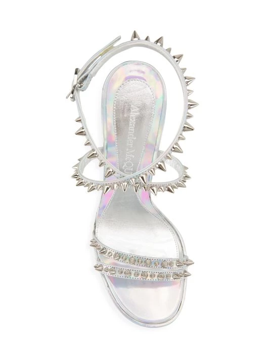 Anchored by a sculptural metal heel, Alexander McQueen’s sandals are punctuated with signature punk spikes. This Italian-made pair is crafted of rich metallic leather.